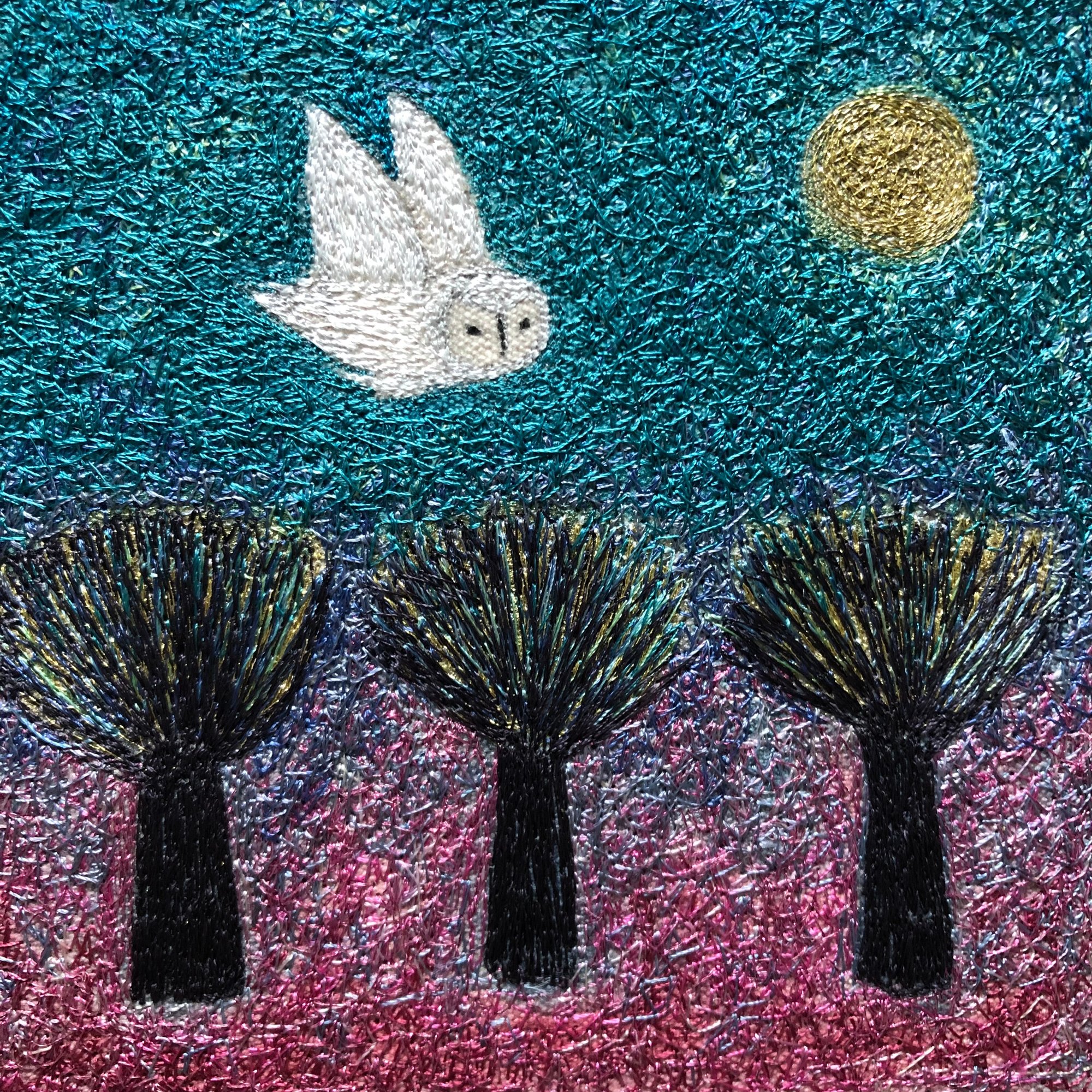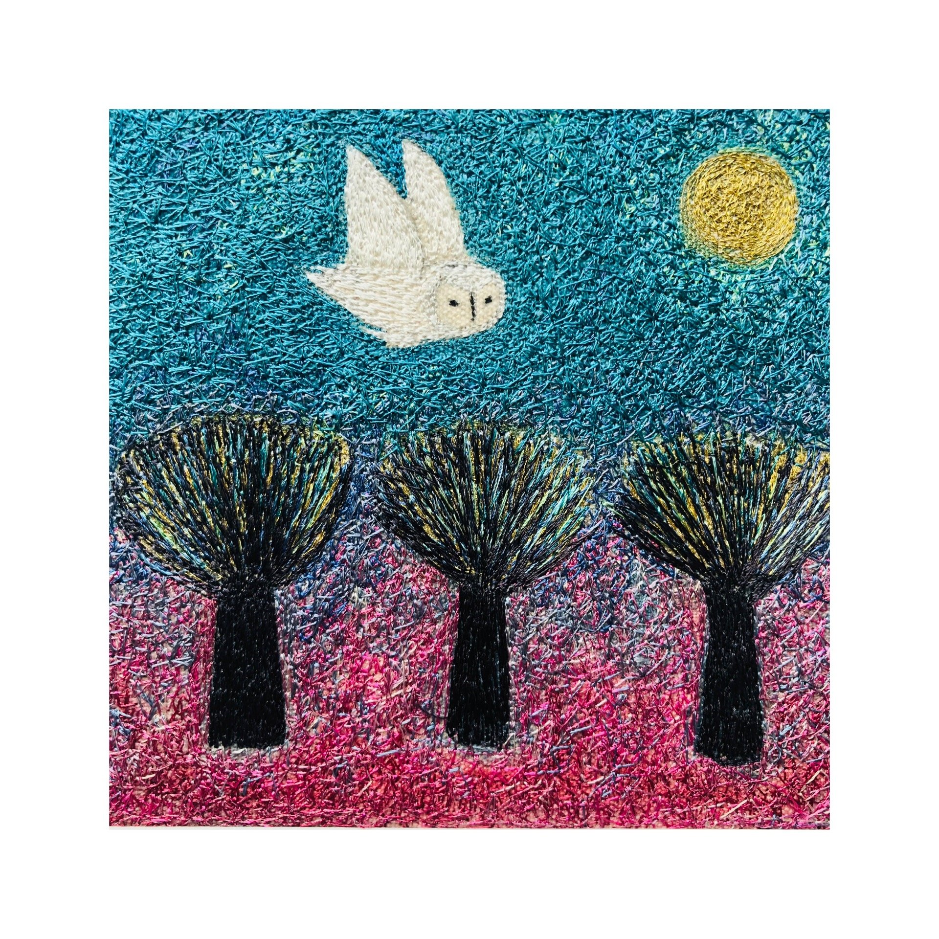 Each unique piece is hand painted on artist canvas before covering with millions of tiny stitches, using the just the needle, guided by hand on a domestic sewing machine.