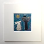 Handmade embroidery (4 inch x 4 inch) in a white mount with backing card, ready to fit a standard 8 inch x 8 inch frame of your own choosing or alternatively display on a shelf in it mount.