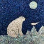 Each unique piece is hand painted on artist canvas before covering with millions of tiny stitches ,using the just the needle, guided by hand on a domestic sewing machine.