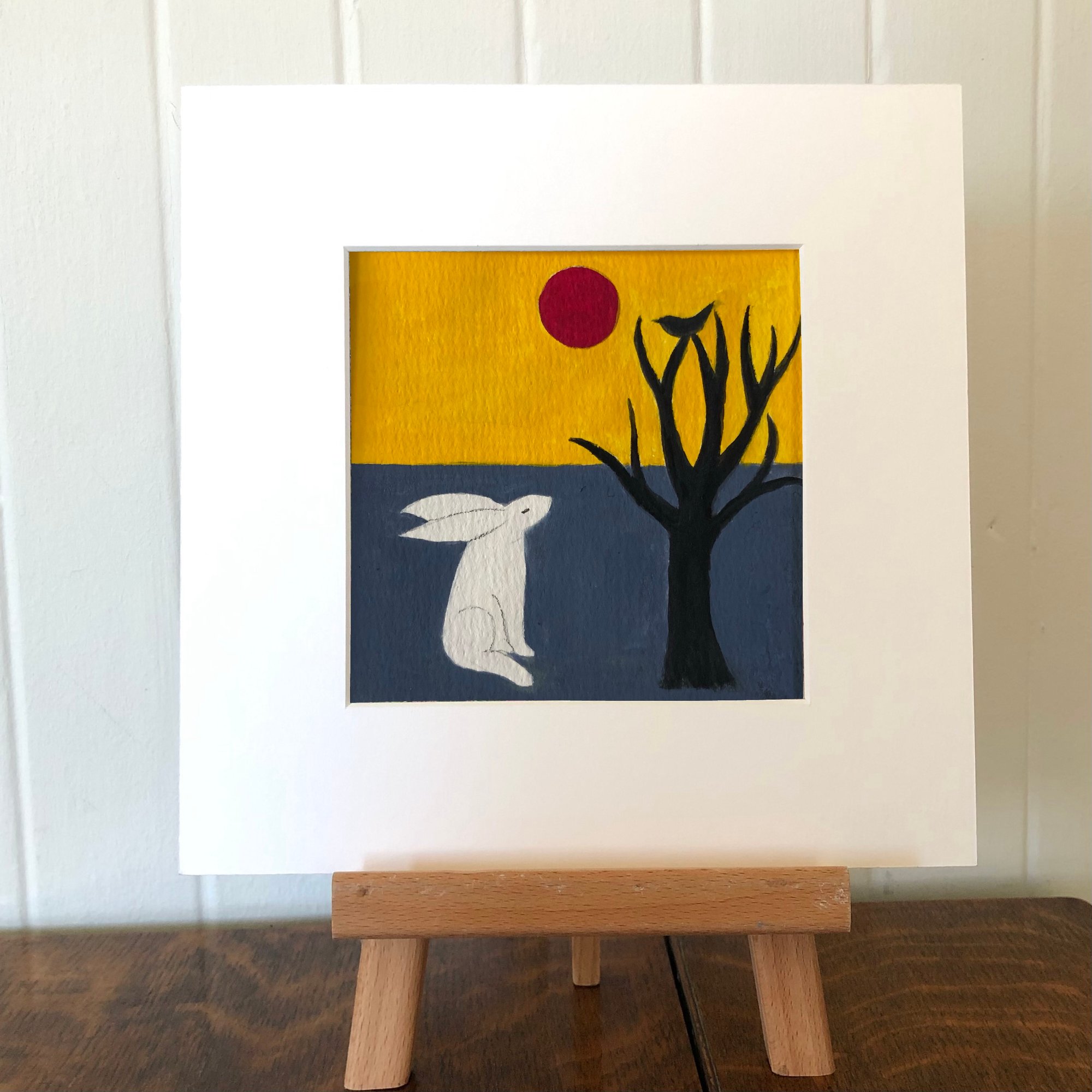 A wee Gouache and charcoal painting, these are original mixed media preliminary works for the painted stitched pieces, usually the step between my sketchbook and the stitched piece. 12.7cm in a 20.8 ( 8 inch) mount ready to pop in a frame or display on a shelf.